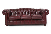 Divano 3 posti chesterfield club vintage originale in pelle bordeaux
