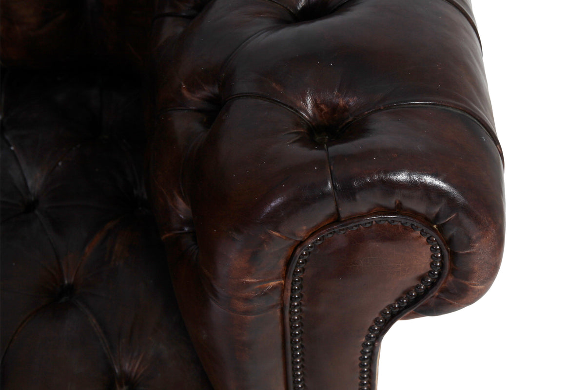 Antico divano 2 posti chesterfield club inglese originale in pelle marrone anticato